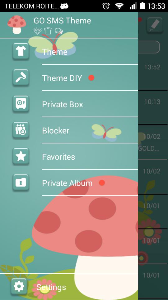 - 要安裝,請按照以下3個簡單的步驟進行操作:下載後首先按打開,轉到安裝類別,選擇GO SMS Pro蘑菇,然後按Apply主題。太好了,你現在已經完成了!